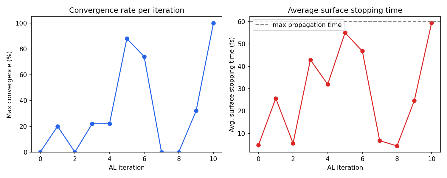 2. Average surface stopping time (fs) per AL iteration