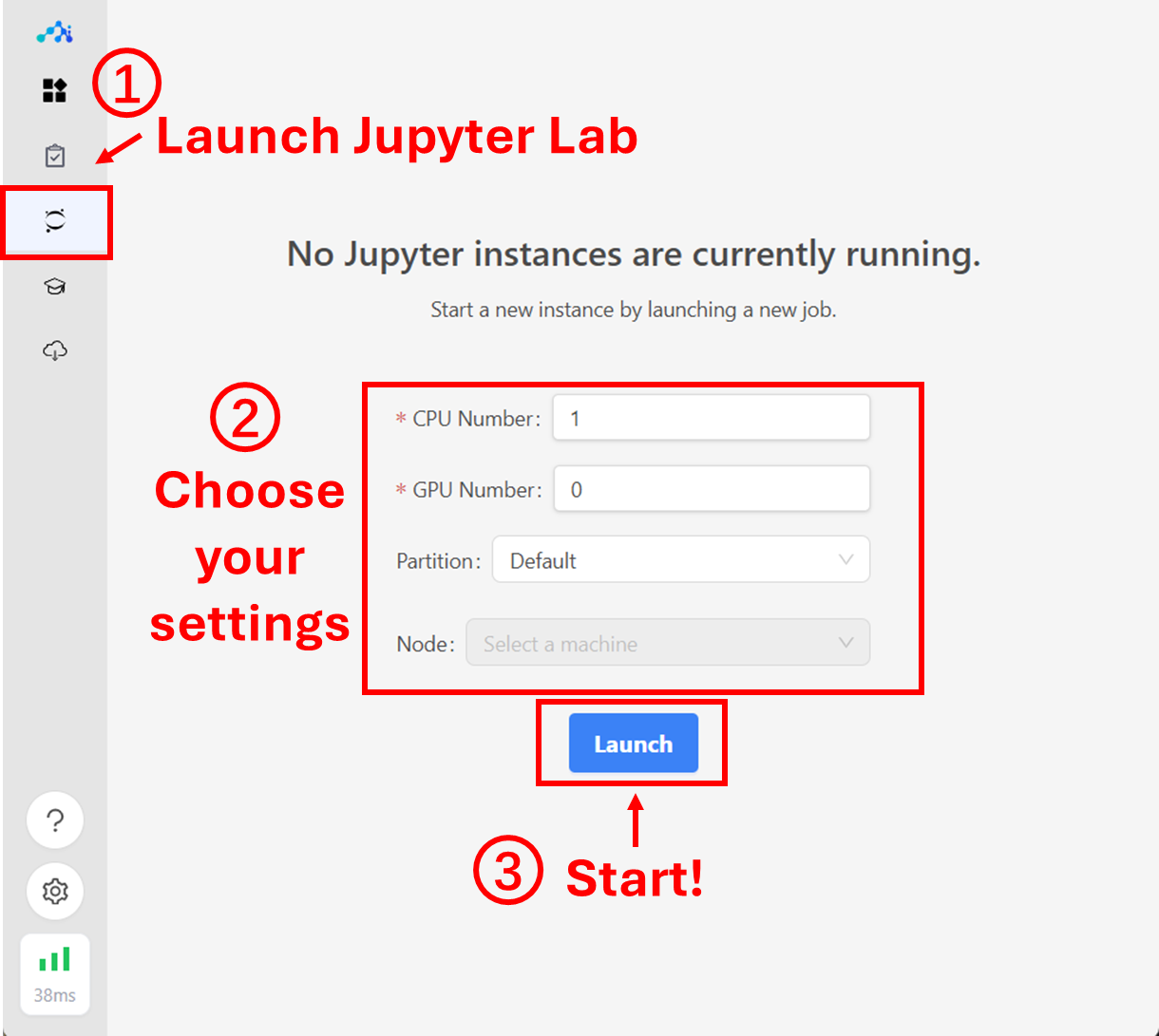 After creating the input file or the python script, you can submit the job by clicking the job submission button. The pumped out terminal space will show the status of the job. You can also check the Job List page: